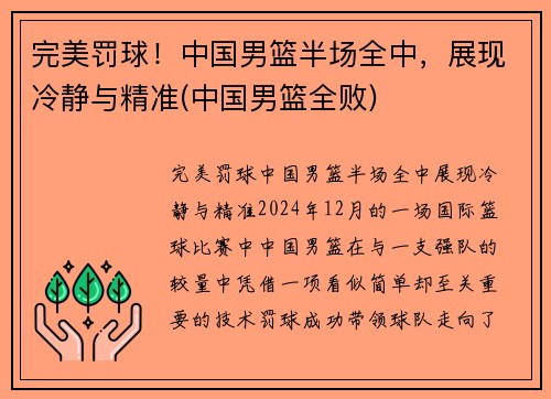 完美罚球!中国男篮半场全中,展现冷静与精准(中国男篮全败)